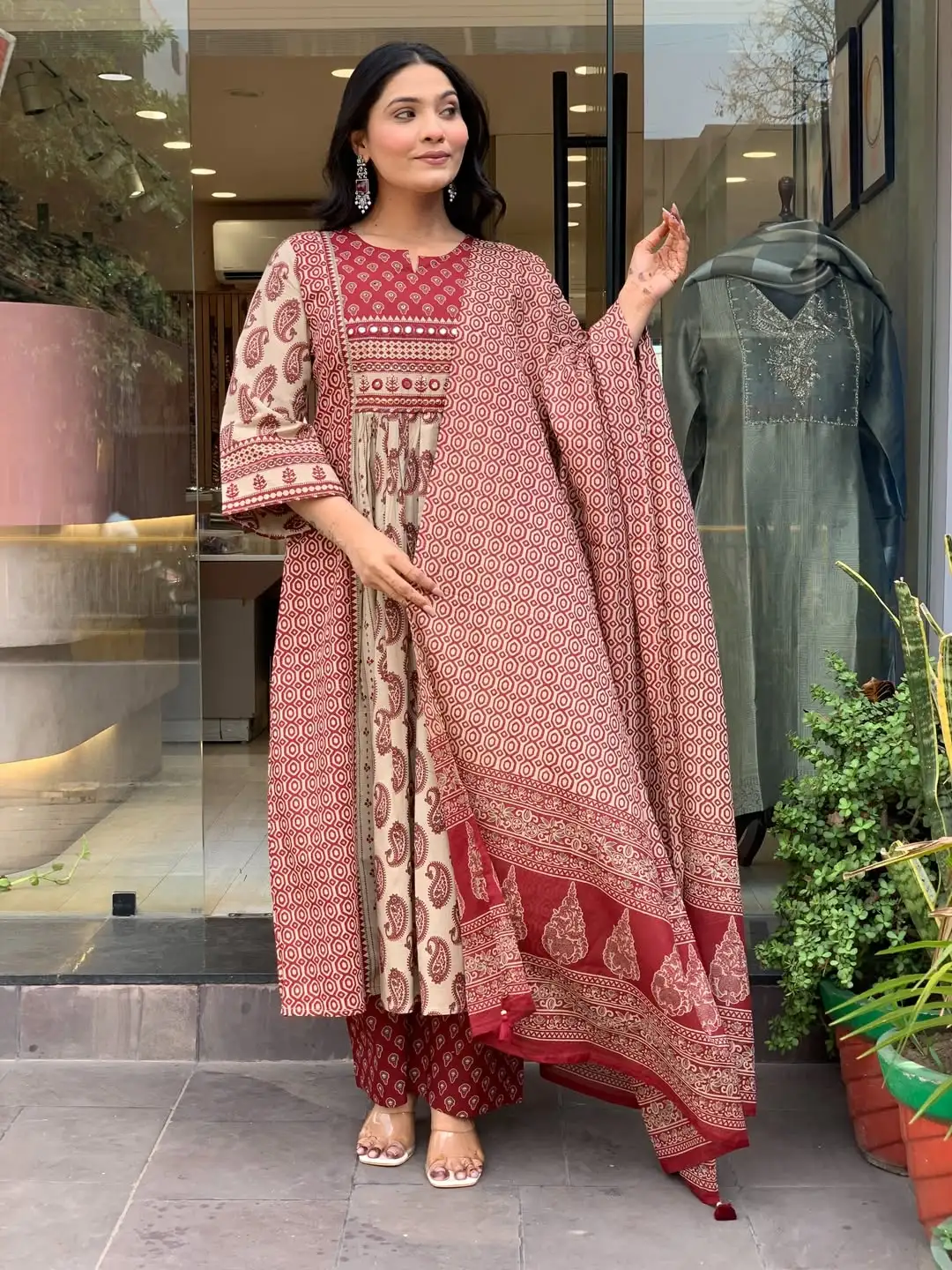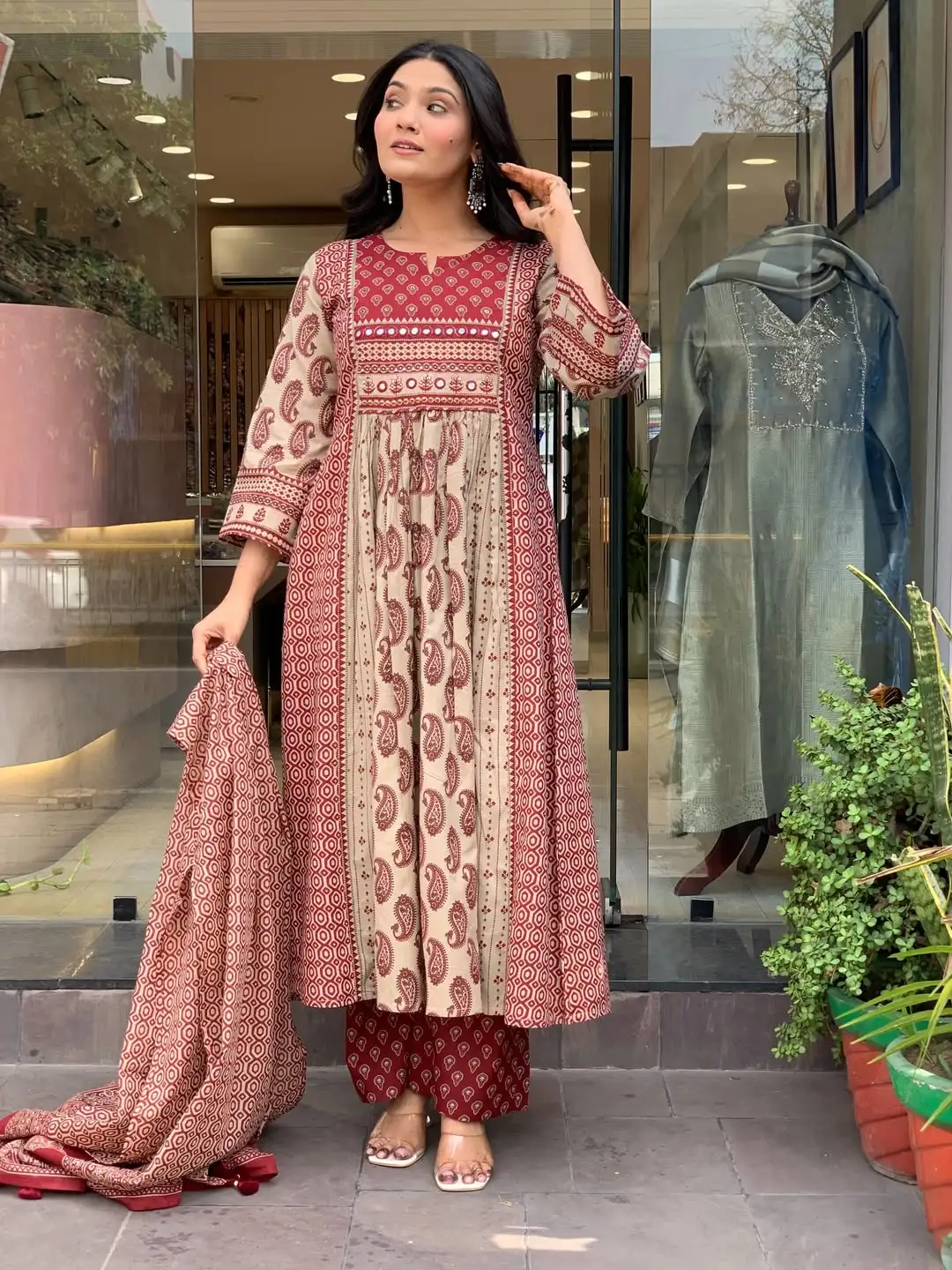 বডি সফট কটন প্রিন্ট, বুকে গ্লাস ওয়ার্ক